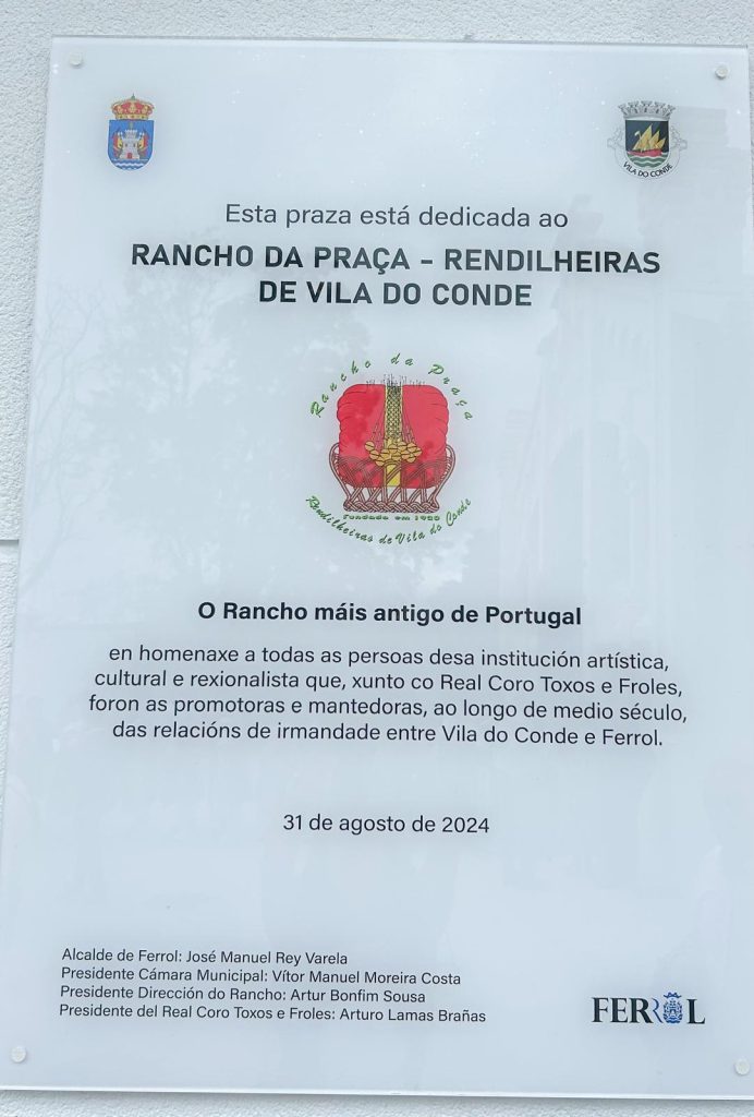 Recorde-se que Vila do Conde e Ferrol são cidades geminadas desde 1973 como resultado das “relações de irmanamento” entre duas Instituições: o Rancho da Praça e Real Coro Toxos e Froles.