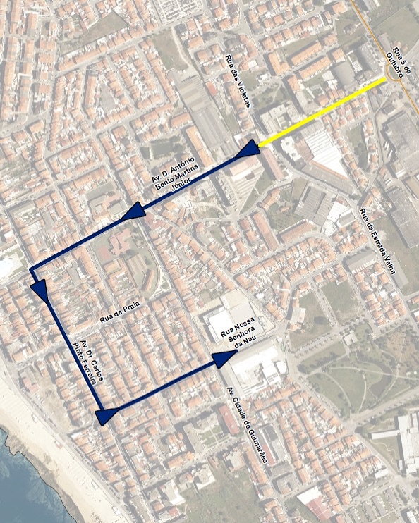 Rua das Violetas- Avenida D. António Bento Martins Júnior- Avenida Dr. Carlos Pinto Ferreira – Rua Nossa Senhora da Nau