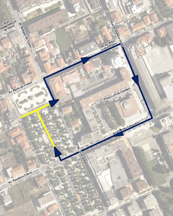 Jardins Júlio Graça, Avenida Dr. Artur Cunha Araújo – Rua Dr. Pereira Júnior – Praça Luís de Camões e Avenida Dr. João Canavarro (troço em frente ao tribunal e de ligação aos jardins novamente)