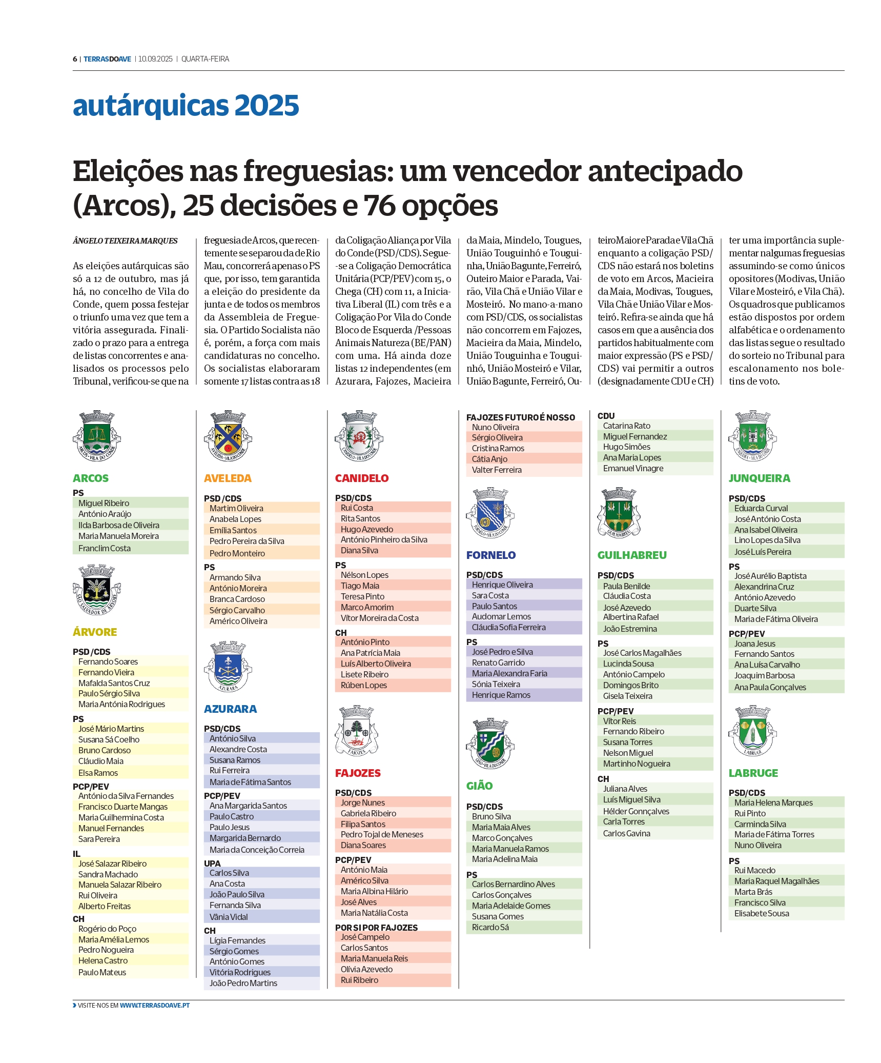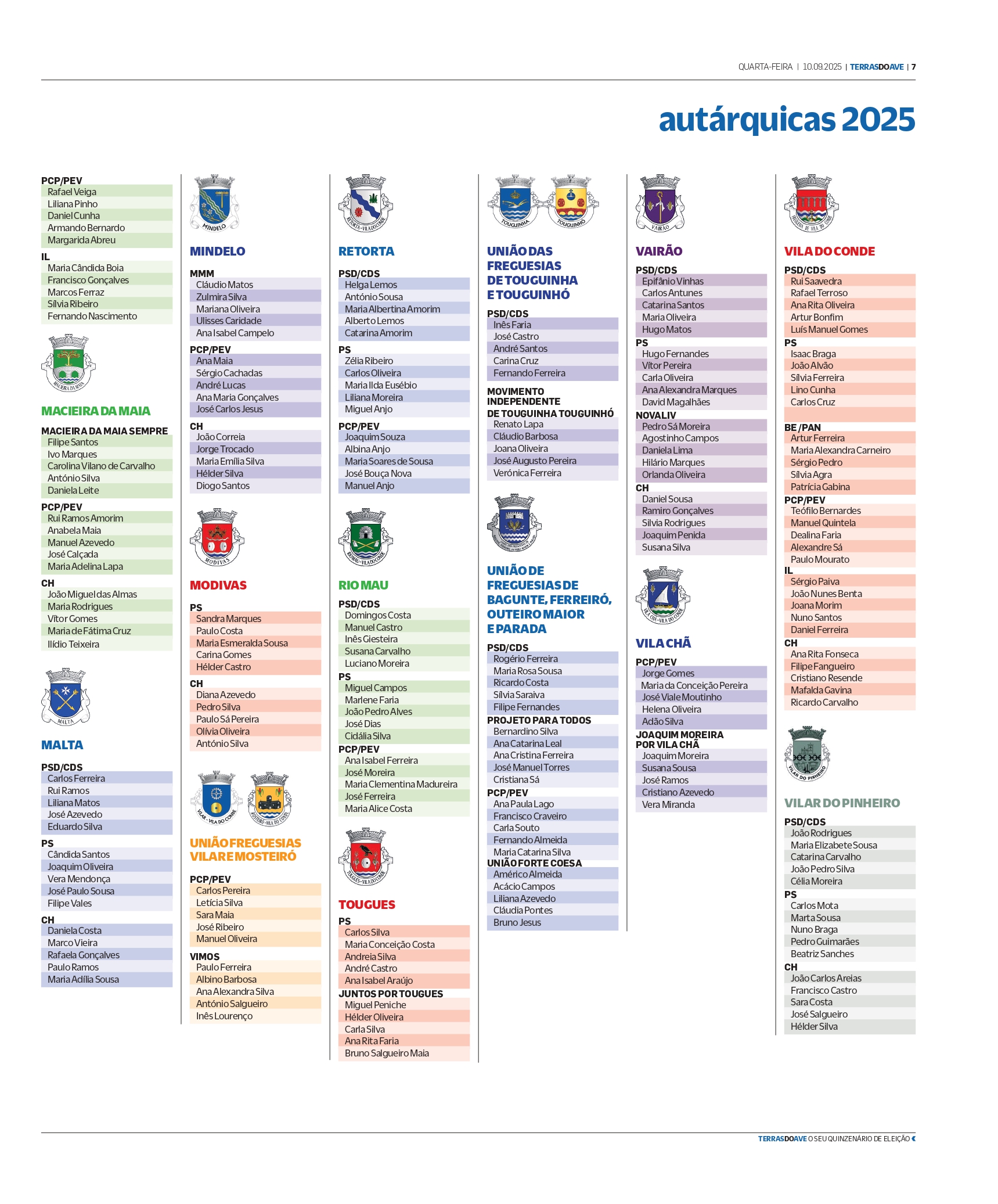 Na última edição publicamos os cinco primeiros nomes dos candidatos às Junta de Freguesias do concelho de Vila do Conde.