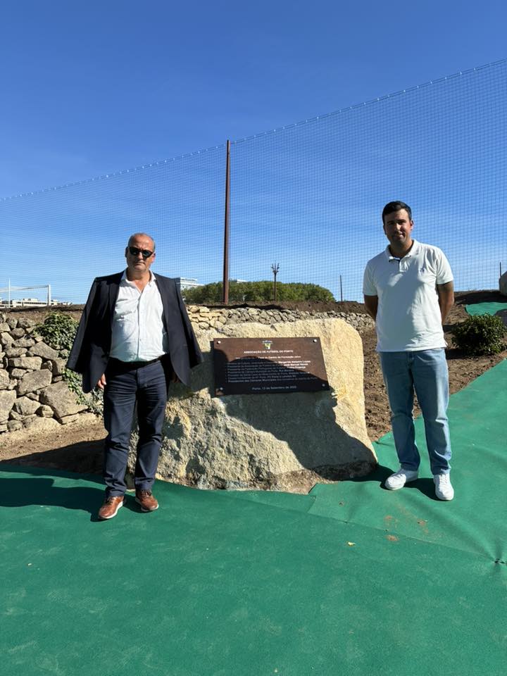 Luís Costa (à esquerda) na inauguração do Campo Diogo Jota, da AF Porto